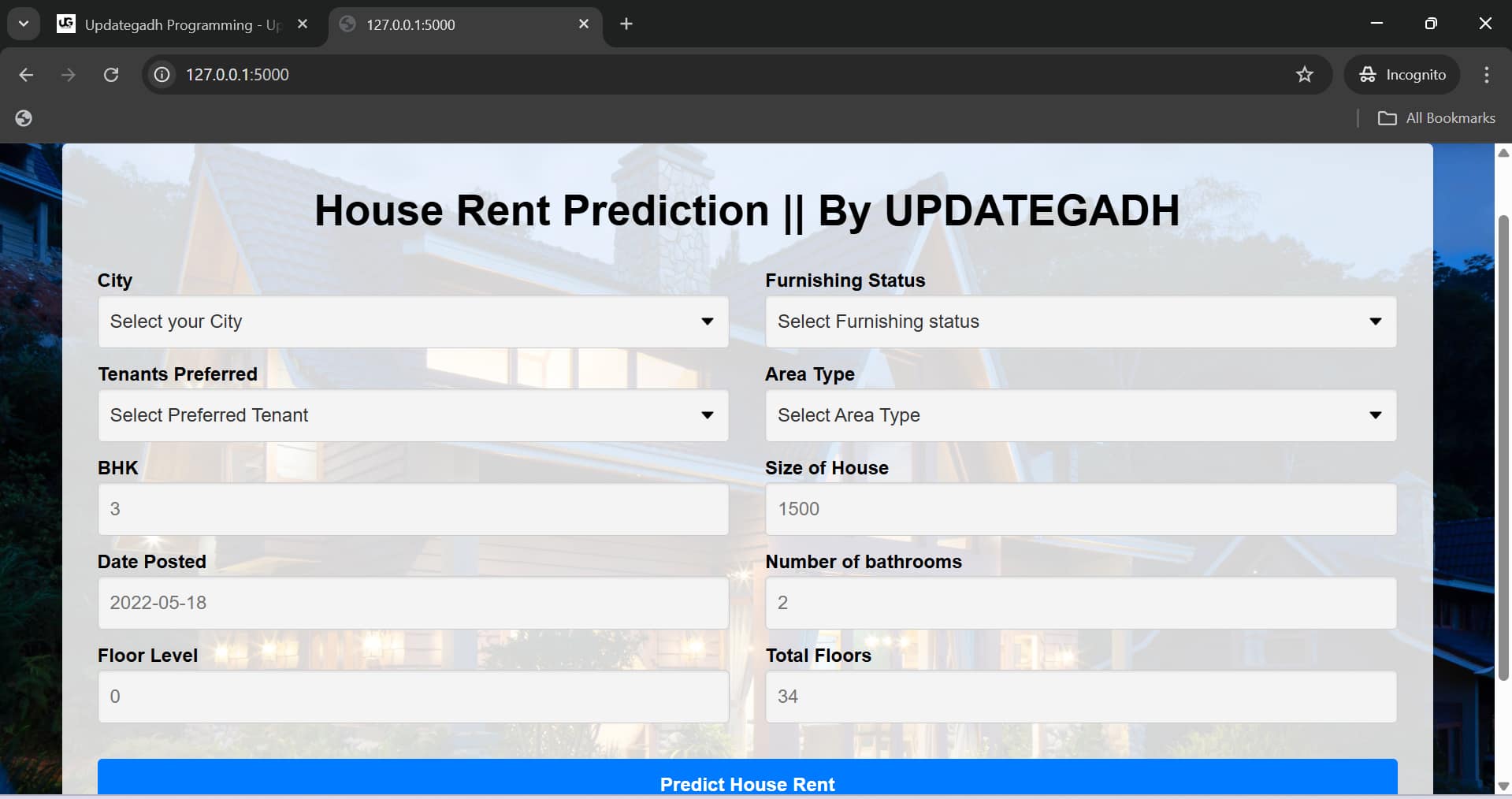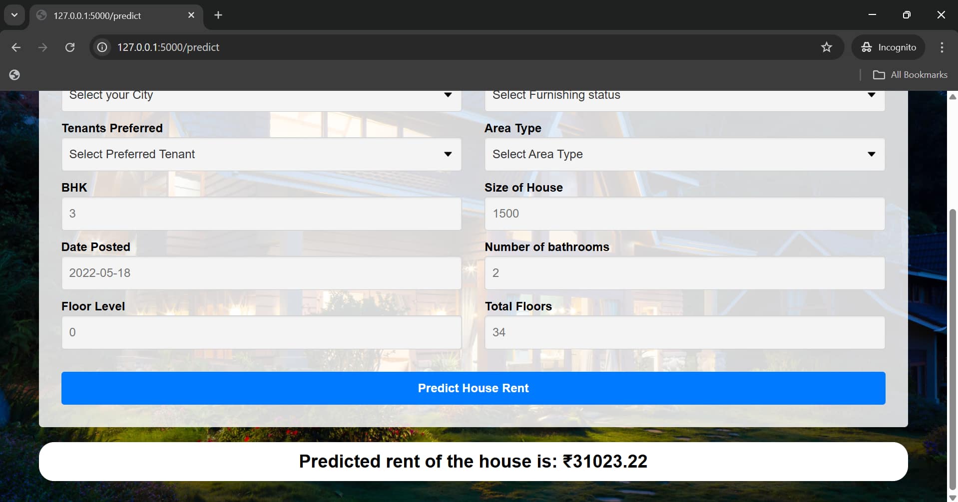 - Input support for city, furnishing status, square footage, number of bedrooms, etc.