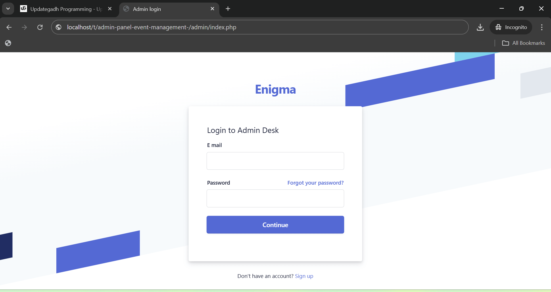 - Place the extracted project folder (admin-panel-event-management, for example) in XAMPP’s htdocs directory.