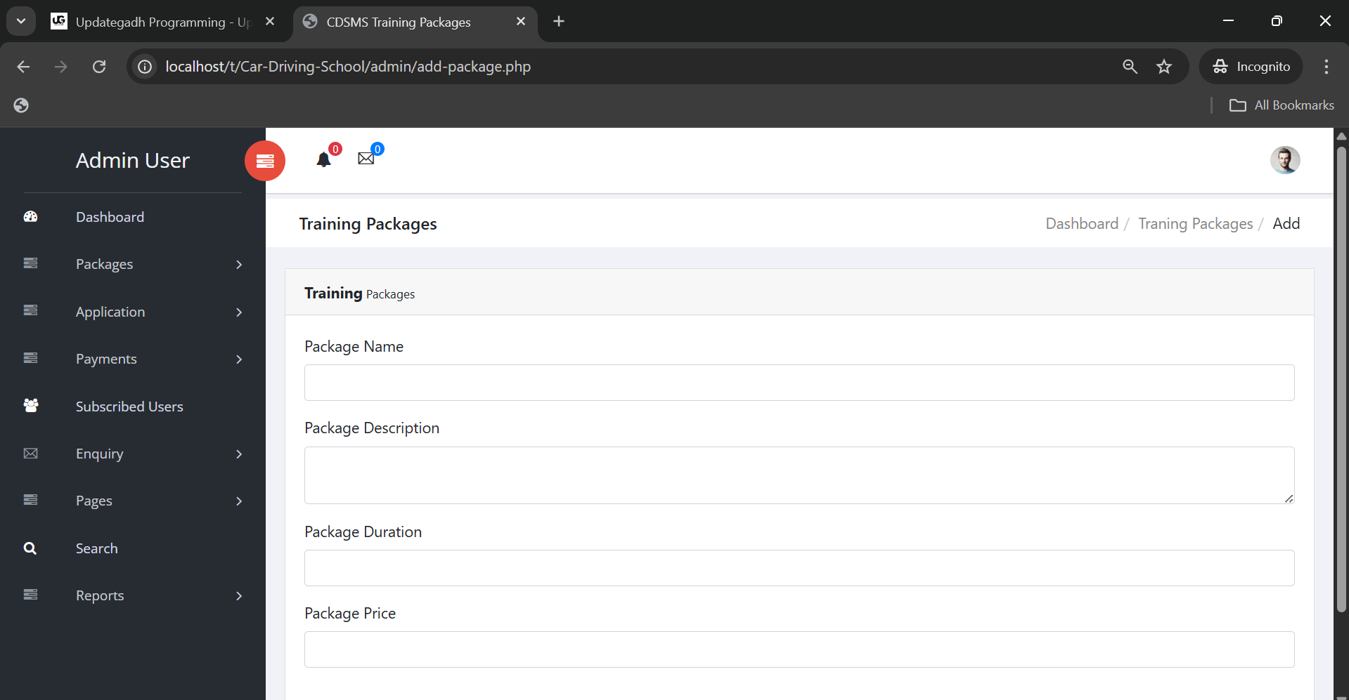 The Car Training Driving School Management System is a web-based application designed to automate and simplify the daily operations of a driving school. Tasks such as managing student applications, scheduling training packages, tracking payments, handling enquiries, and maintaining records are often difficult when done manually. This project provides a complete digital solution that makes it easier for schools to manage both learners and administrative work in a structured way.Built with PHP and MySQL, the system offers a secure, user-friendly platform for administrators and students alike. Key features include new user registration, enquiry management, package scheduling, payment tracking, and detailed reporting. An integrated admin dashboard allows schools to manage student records, packages, and financial data efficiently. By shifting from manual processes to this digital solution, driving schools can achieve greater accuracy, transparency, and overall efficiency in their operations.