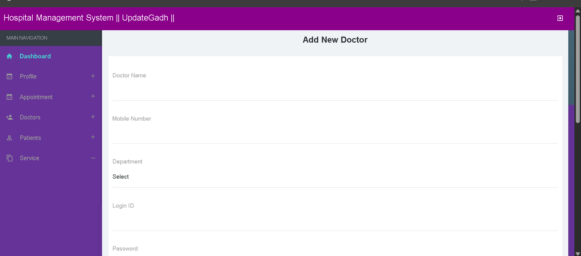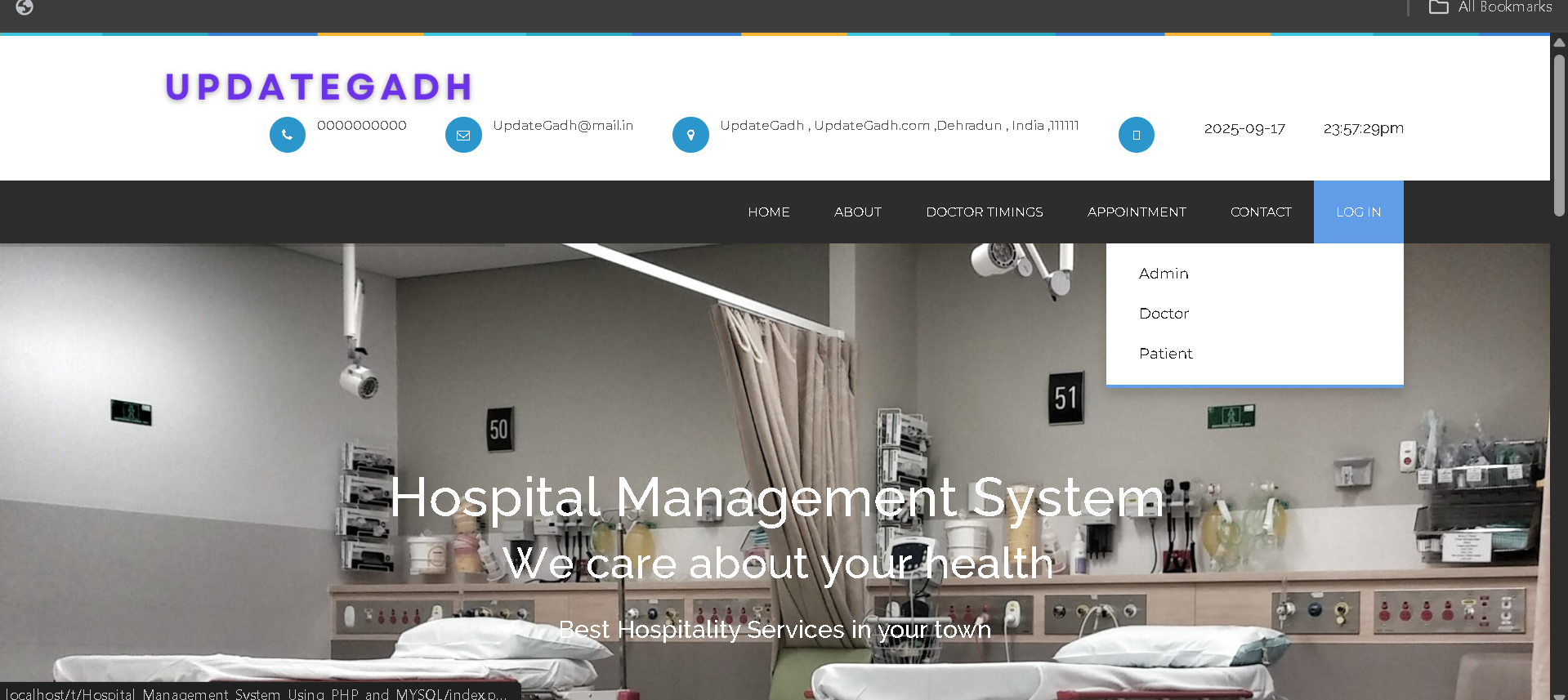 Launch the project in your browser by typing: http://localhost/Hospital_Management_System