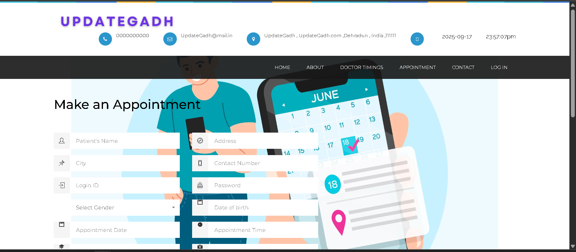 • Appointment Booking: Patients can book appointments with doctors by choosing the date, time, and department.