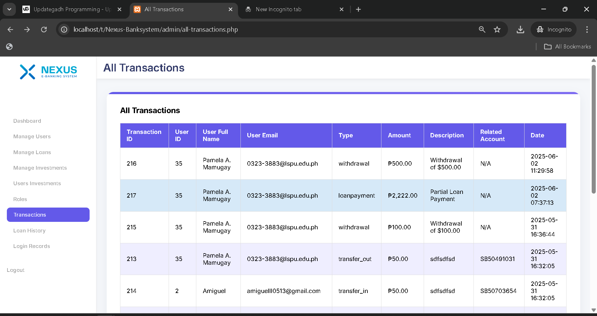 Overall, the Nexus Bank System is an excellent academic project that balances practicality with technical learning. It enables students to practice database integration, apply secure coding practices, and understand the workflow of online banking applications. At the same time, it shows how full-stack development can be used to solve complex problems in the financial sector through structured coding and efficient system design.