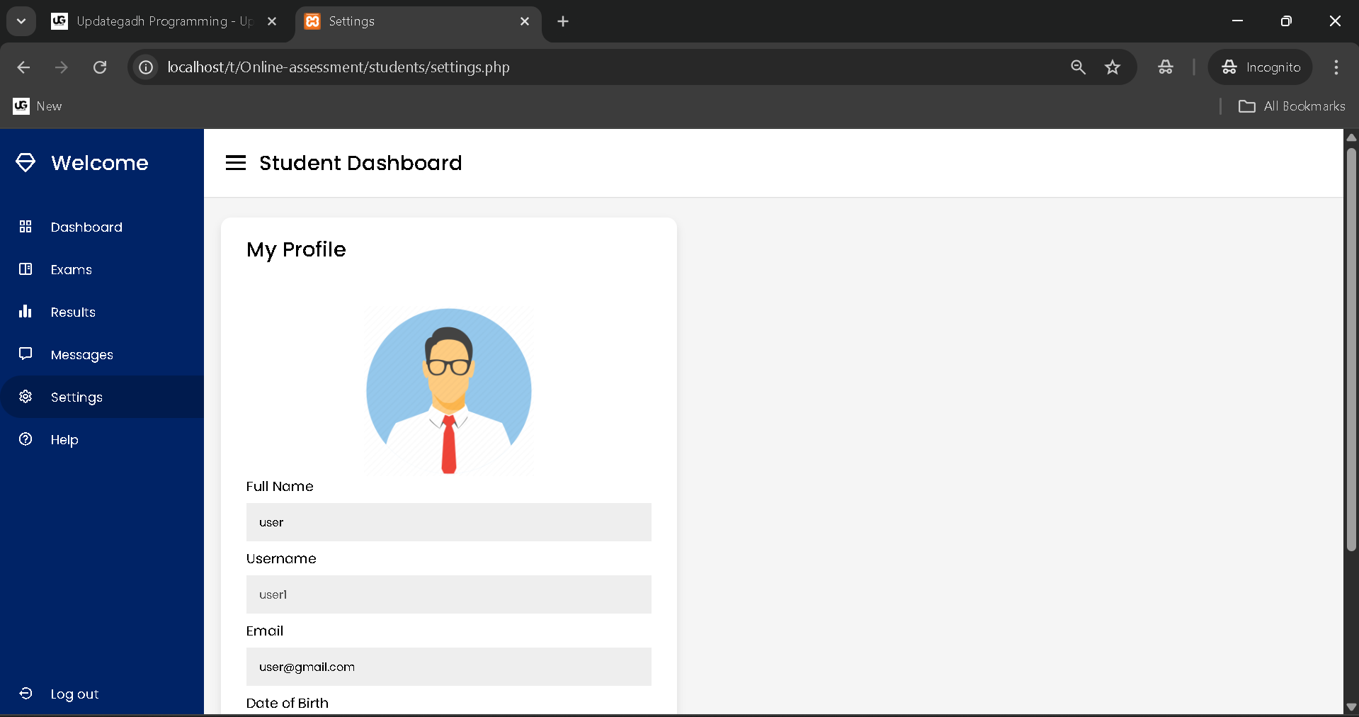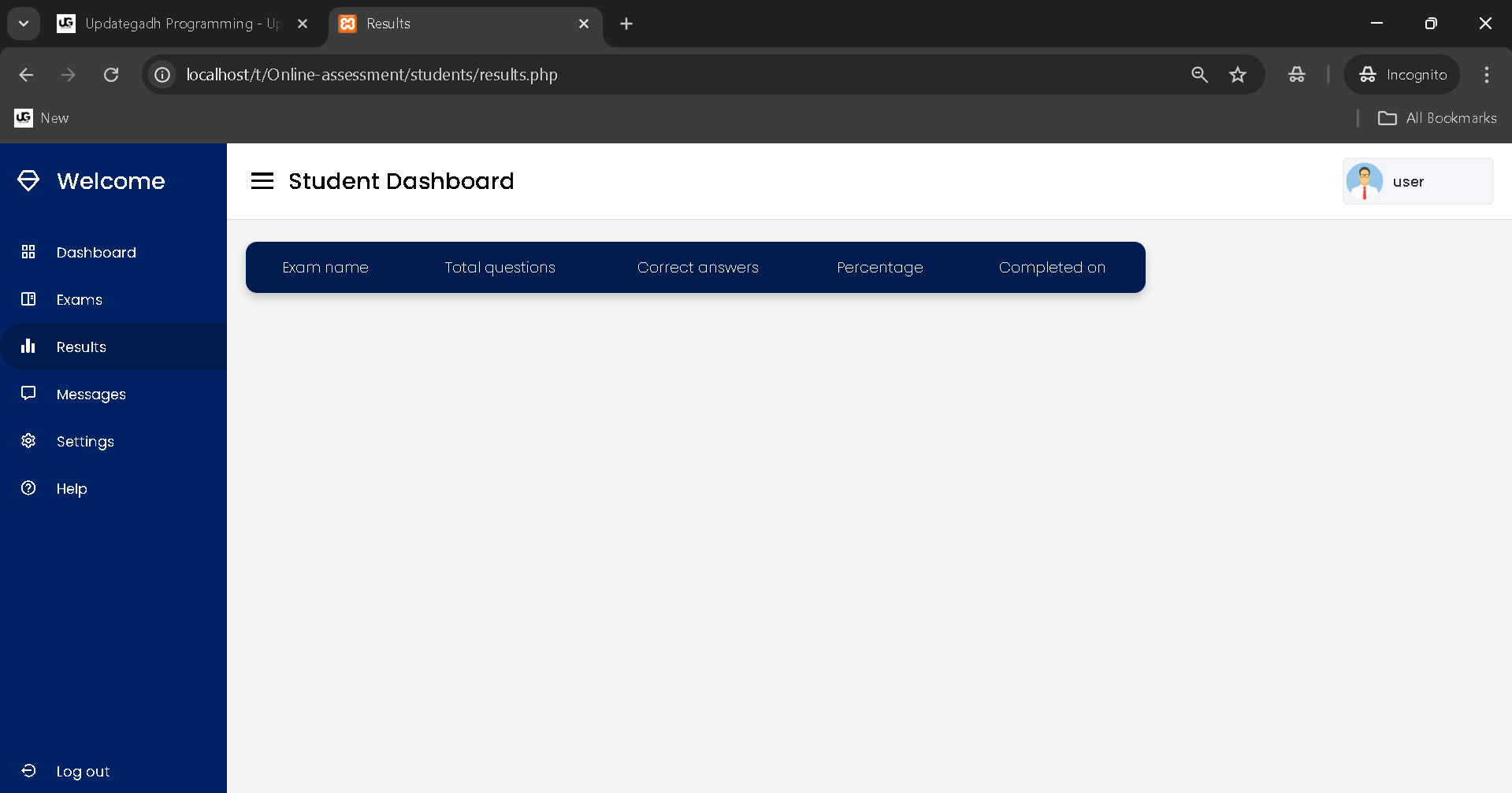 - Log in as a student to access the Dashboard with exam-related information.