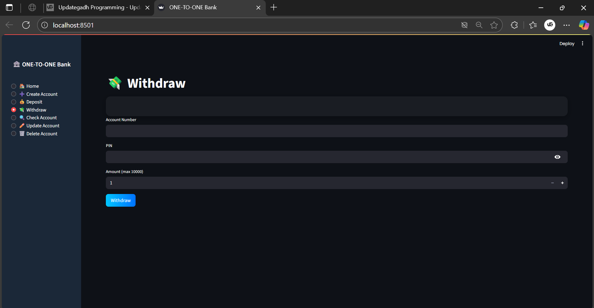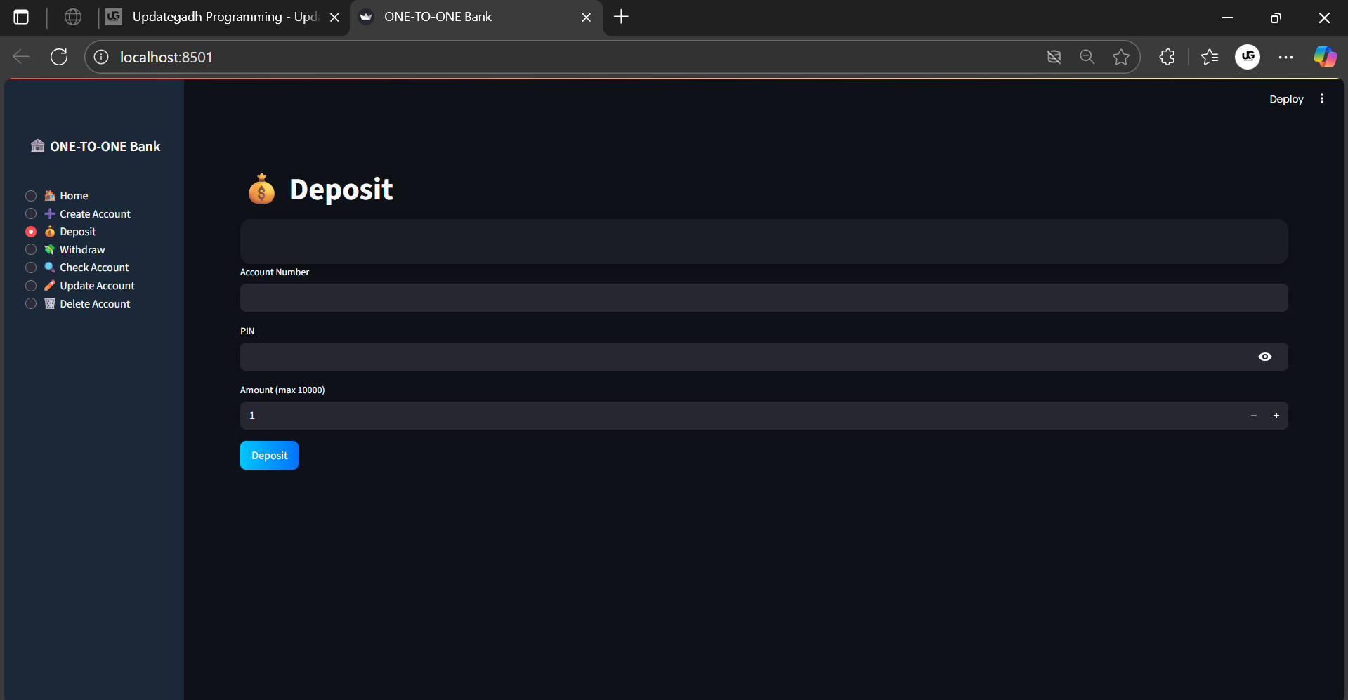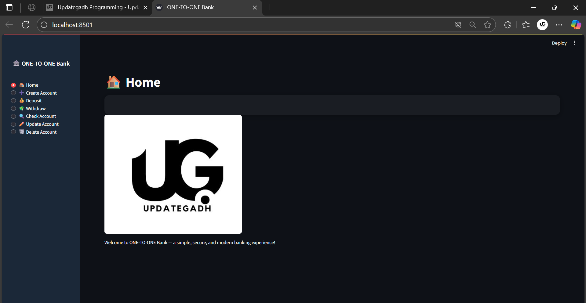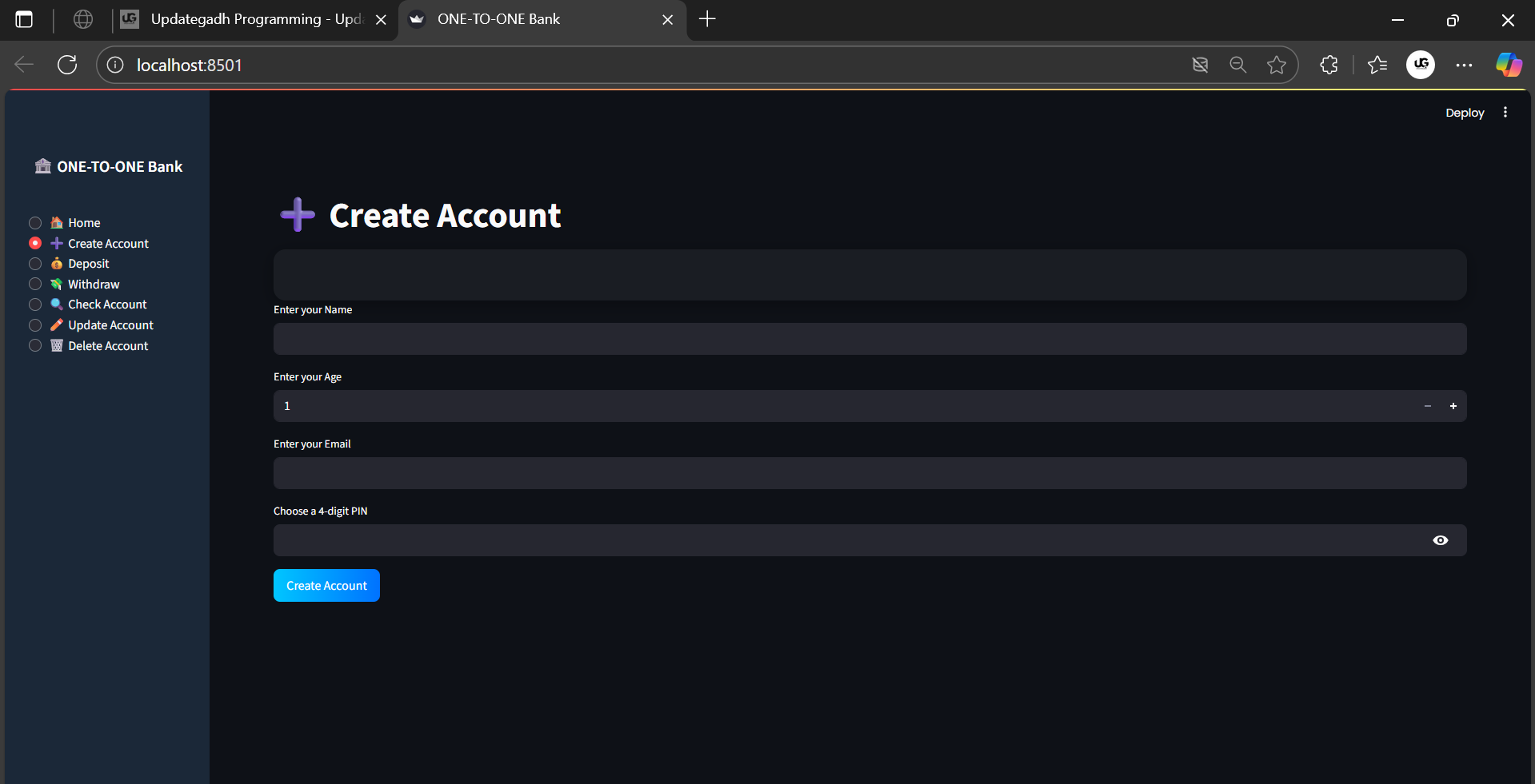 This project is perfect for students and beginners who want to explore real-world banking operations in a controlled environment, and it demonstrates practical skills in Python programming, Streamlit web app development, and basic data management.