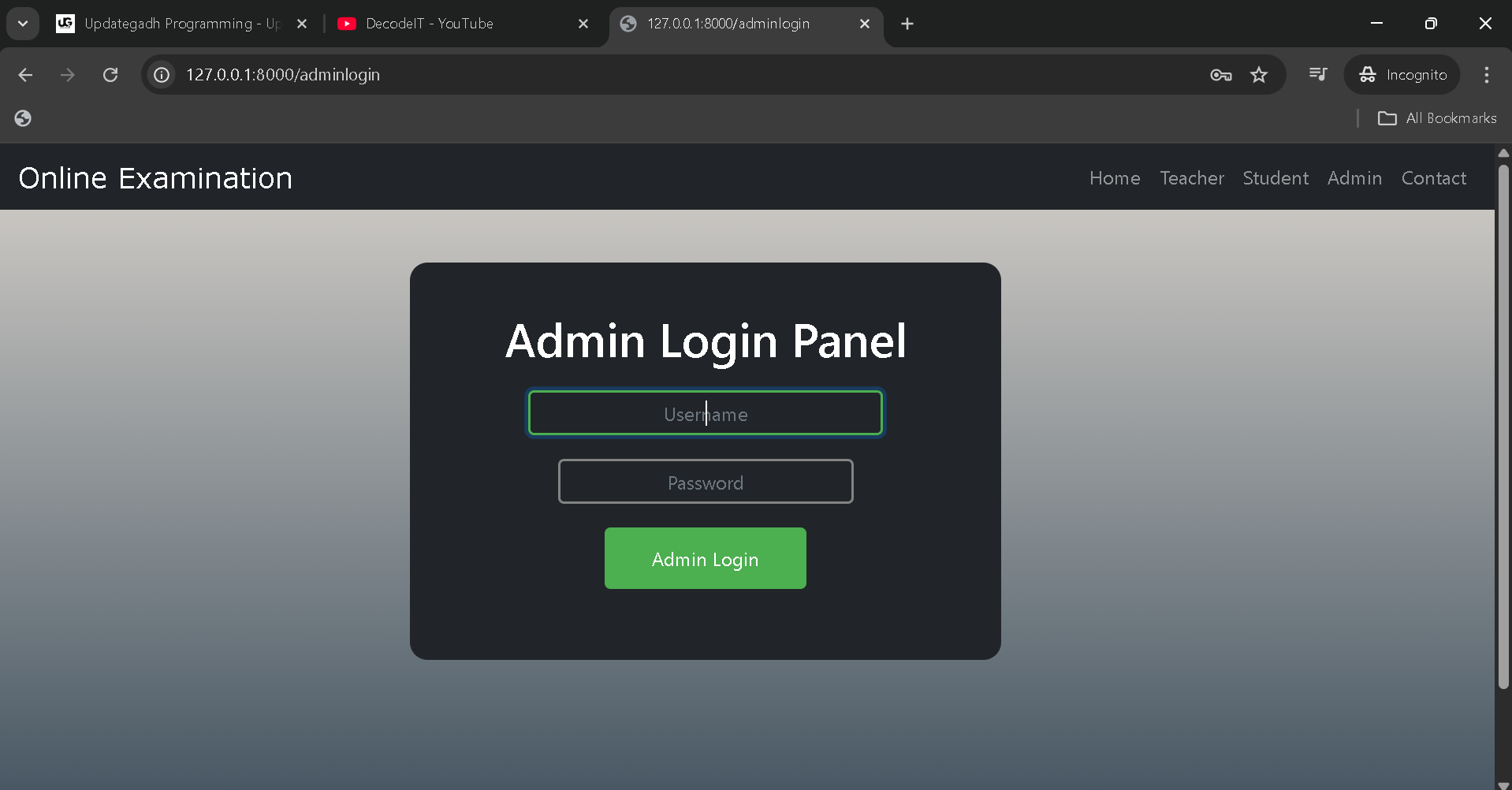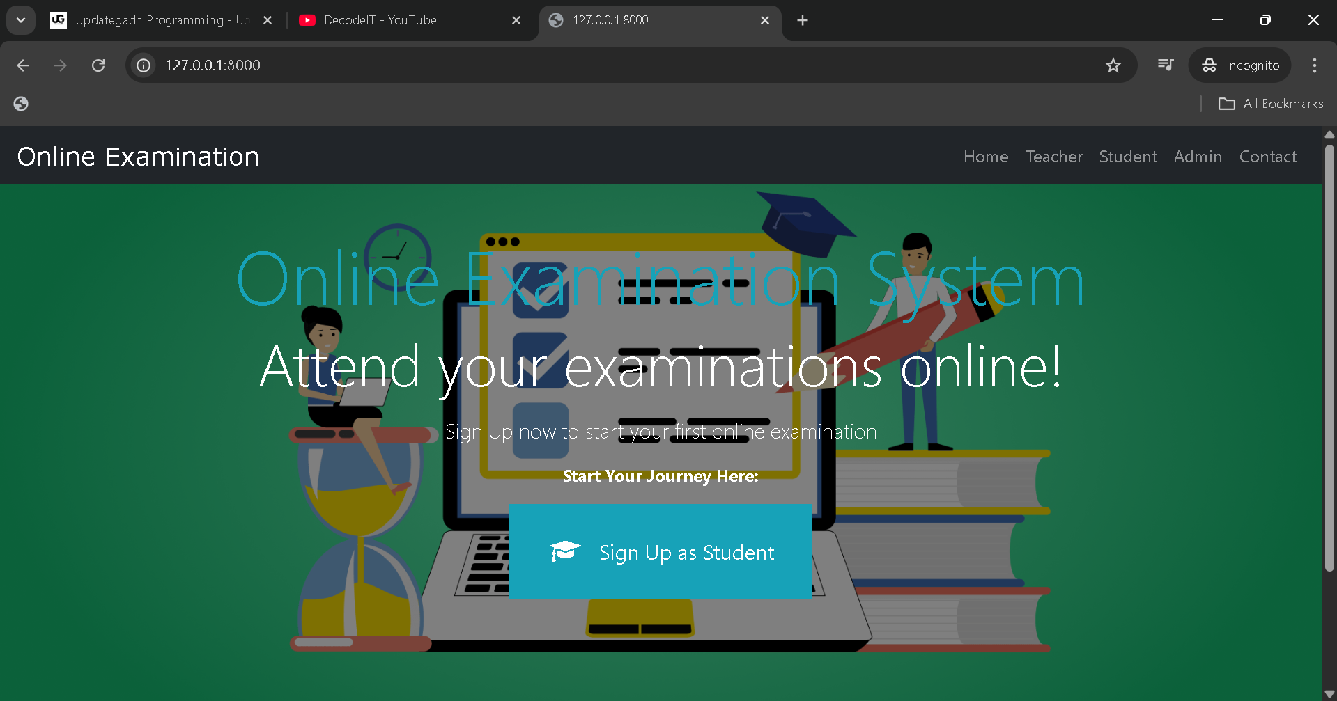 A simple project based on an Online Examination System is designed to make the process of conducting exams easier, faster, and more reliable. In traditional setups, teachers spend hours preparing question papers, manually evaluating answer sheets, and then compiling results. This process is not only time-consuming but also prone to errors. To overcome these issues, this project has been built using the Python Django framework, which ensures a smooth, secure, and fully automated exam process.