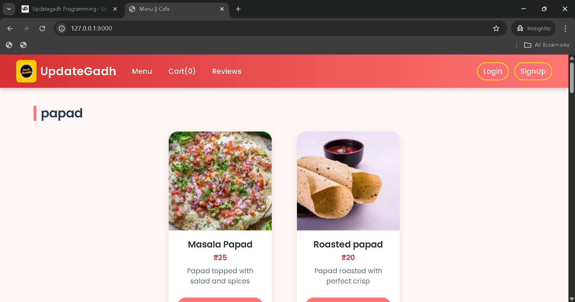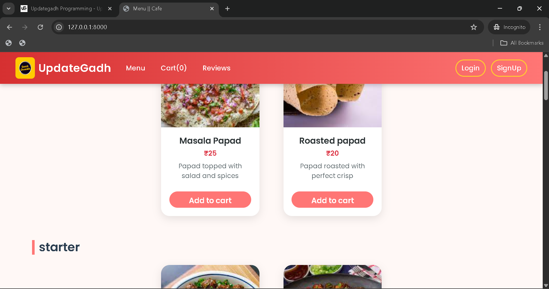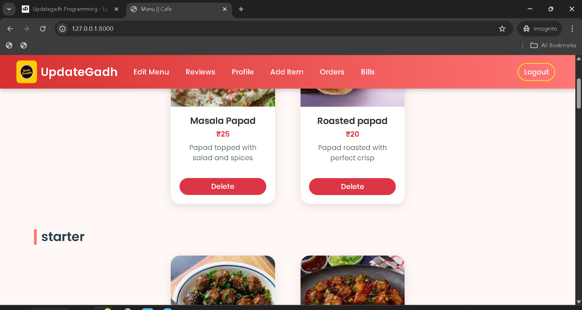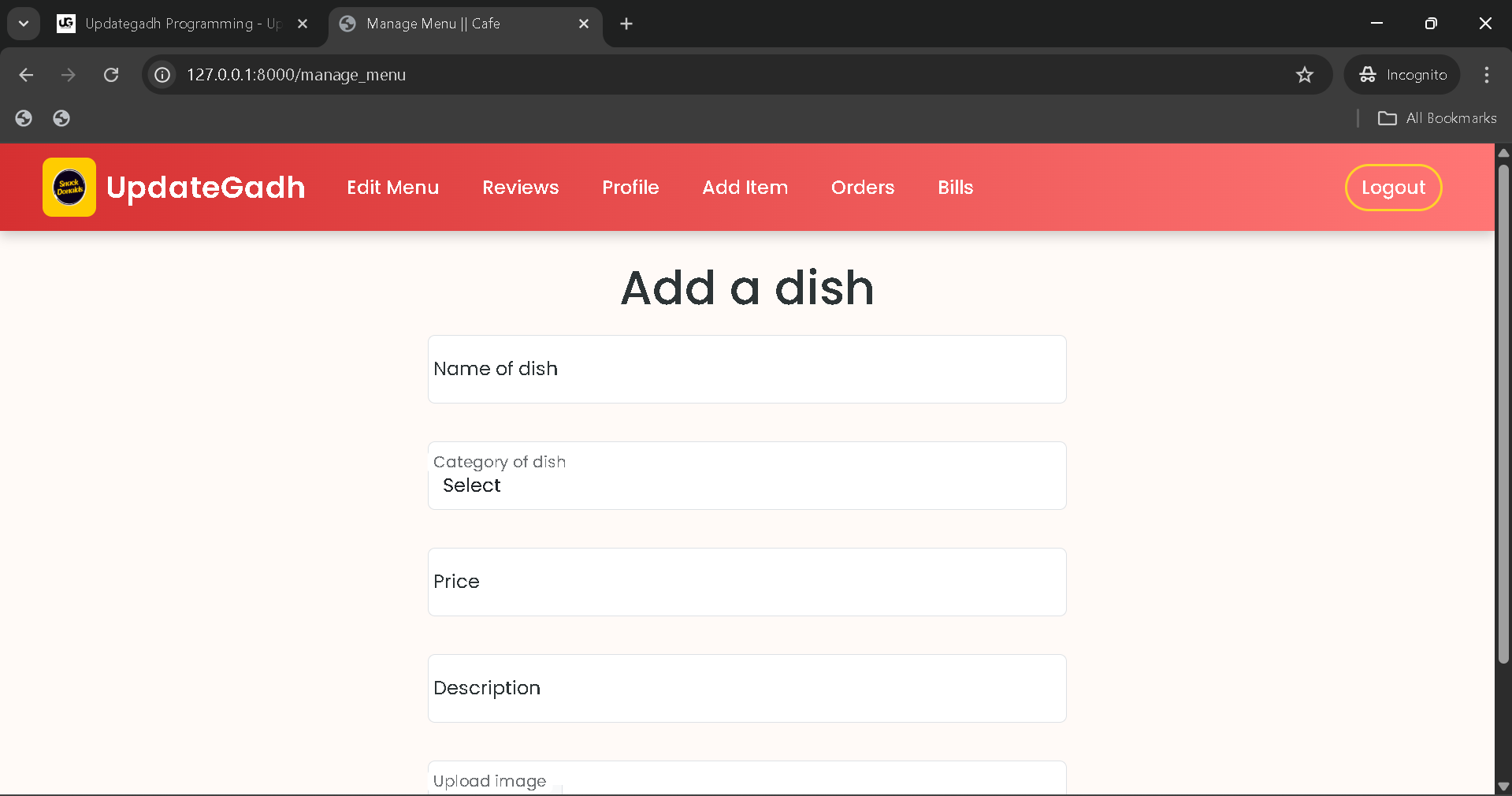• Admin can add, edit, or delete menu items using the Django admin dashboard.