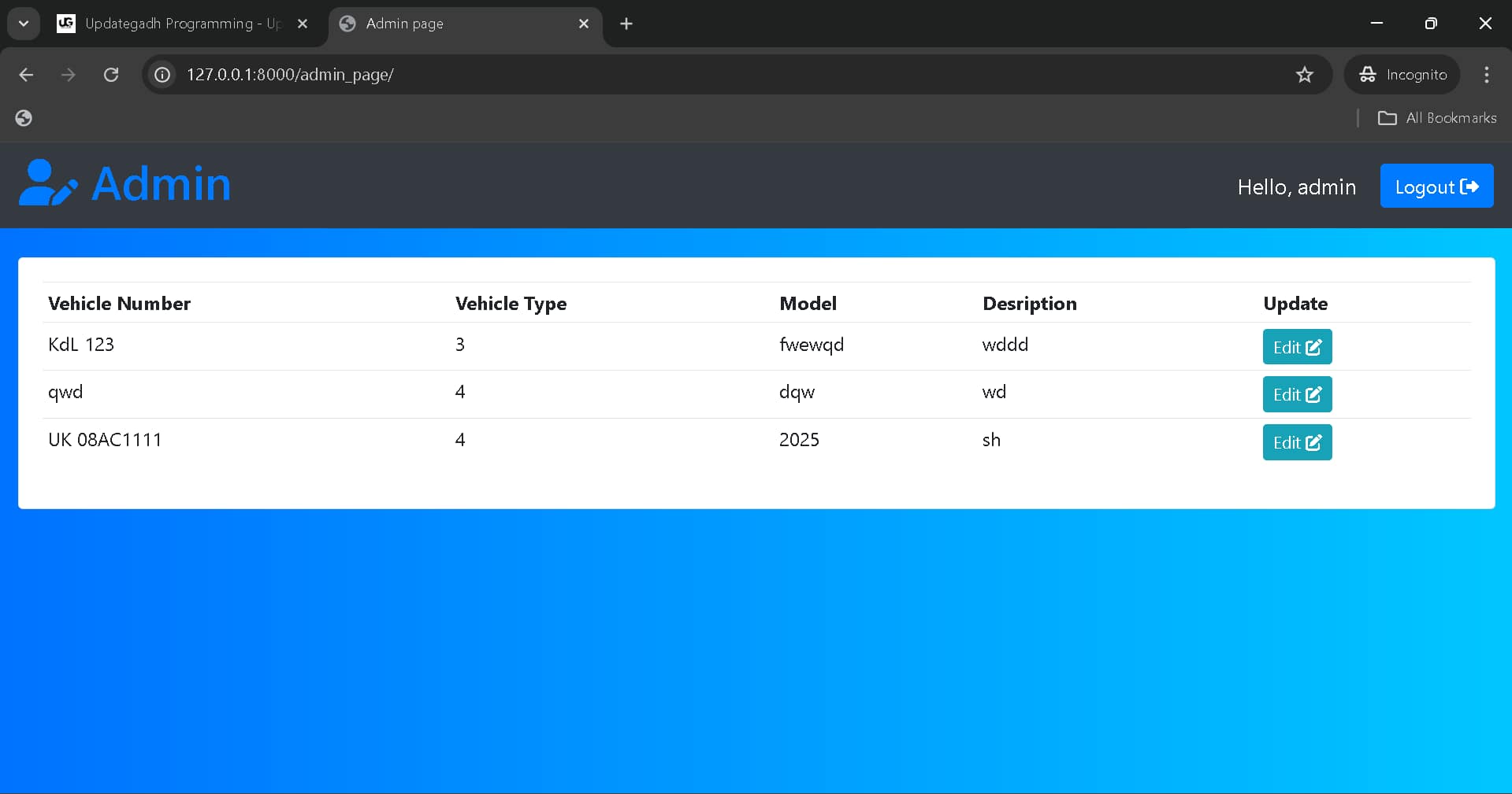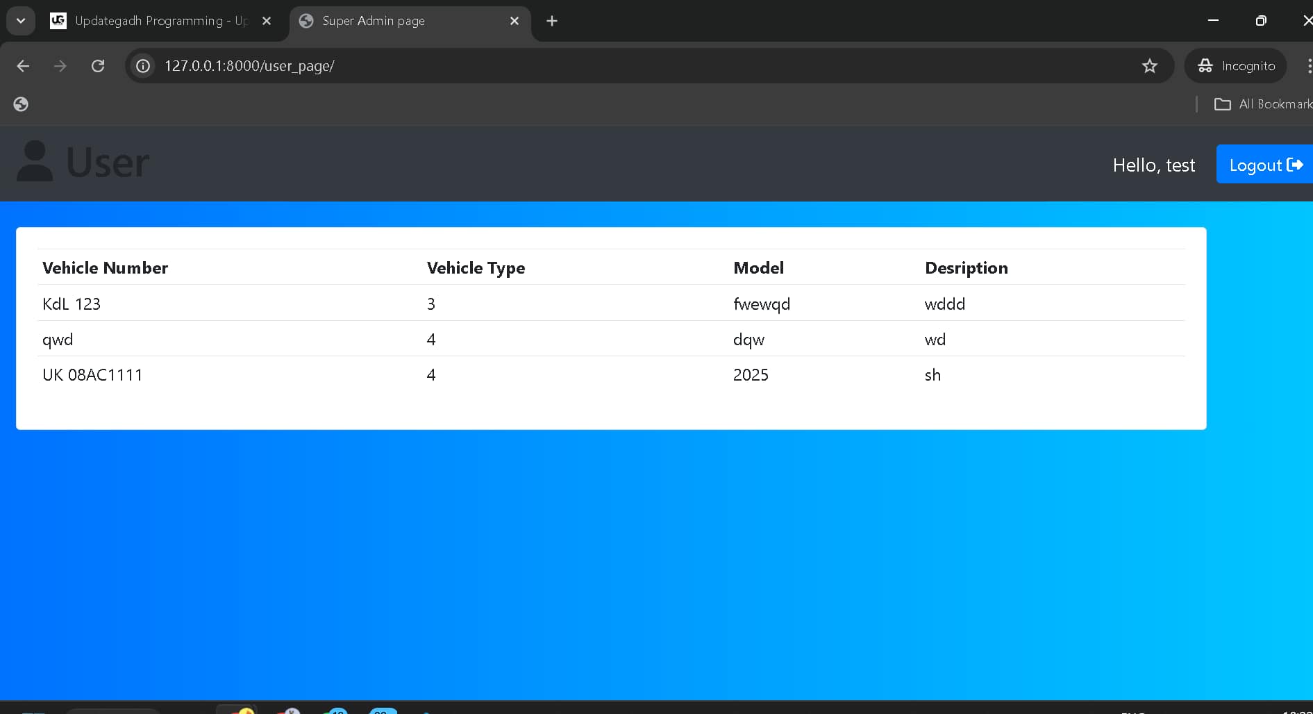 From a student’s perspective, this project is an excellent way to learn Django web development, database management, and role-based authentication. It is structured around real-world requirements, making it a practical example of how software can streamline vehicle handling. For students, it not only strengthens technical skills but also provides a solid project for portfolios and resumes. In real life, such a system could be applied to vehicle rental services, company fleets, or even government vehicle records, showing its broad applicability.