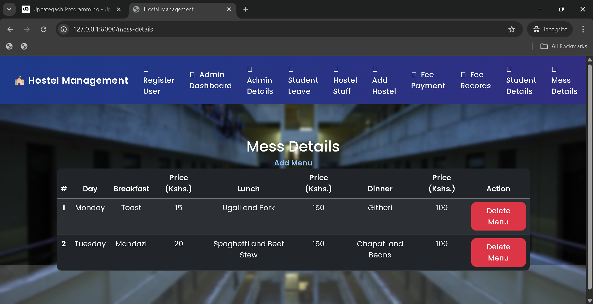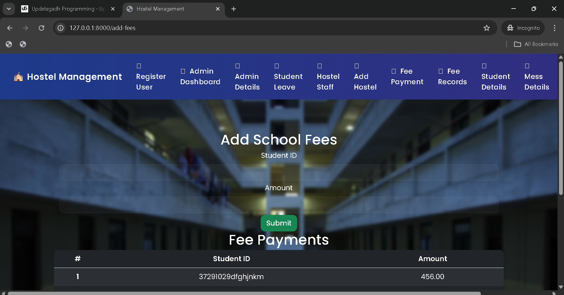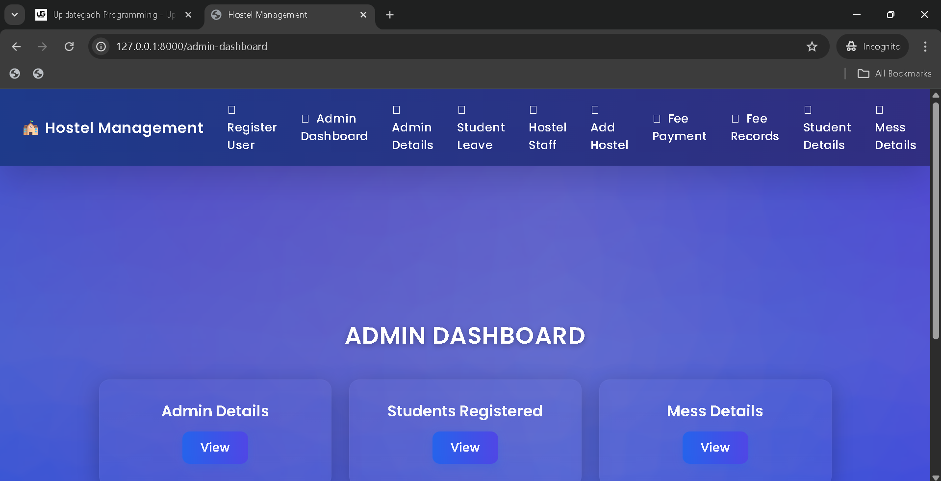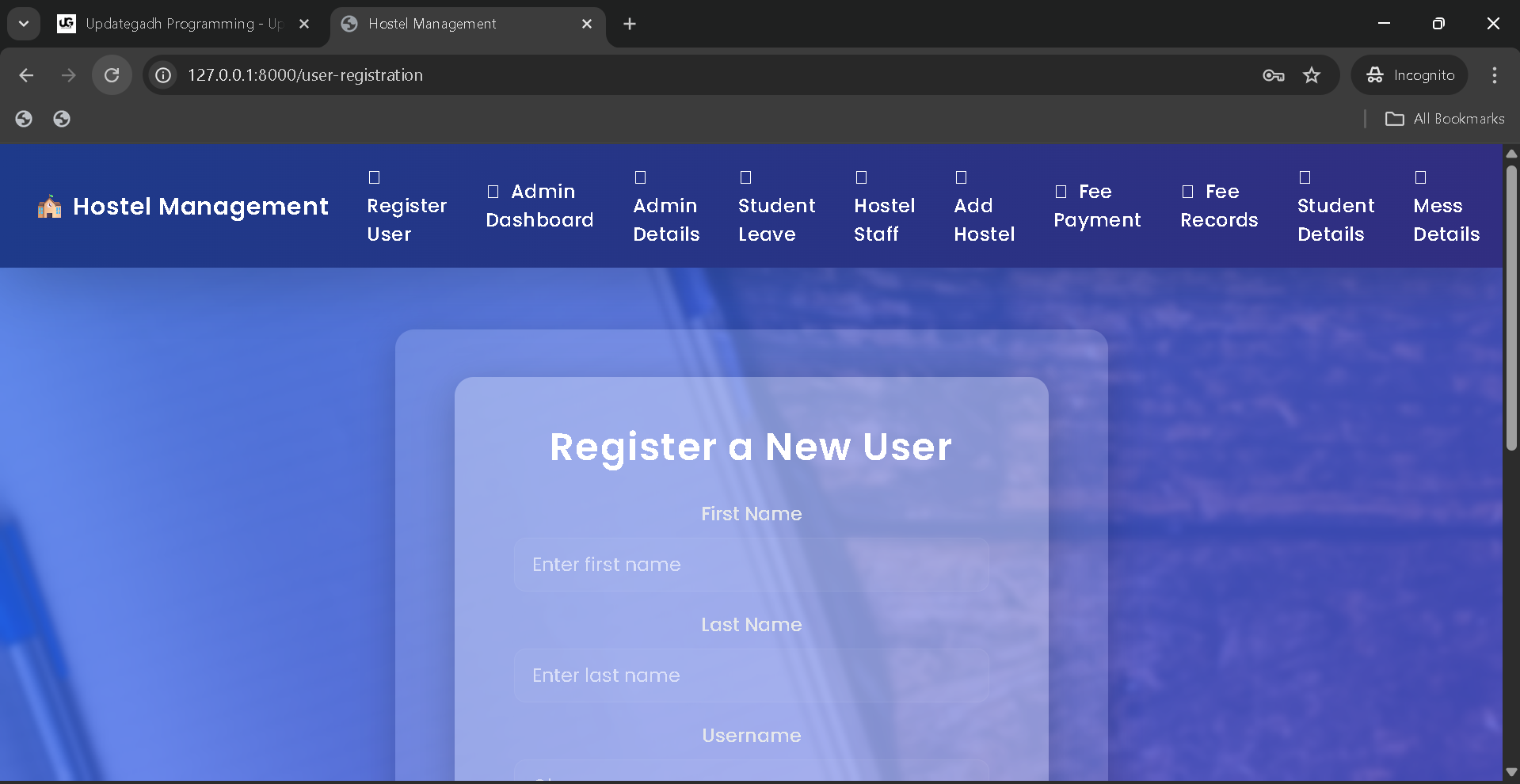 Now, open your browser and visit the URL above to use the Hostel Management System.