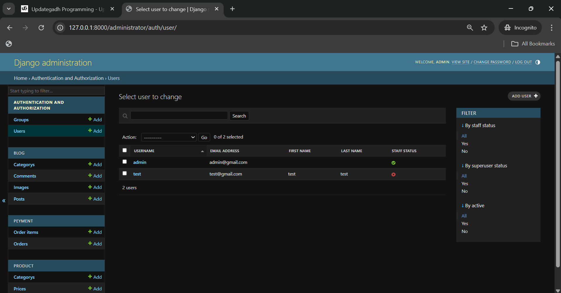 Used to manage products, categories, blog articles, and customer orders. - Home Page: