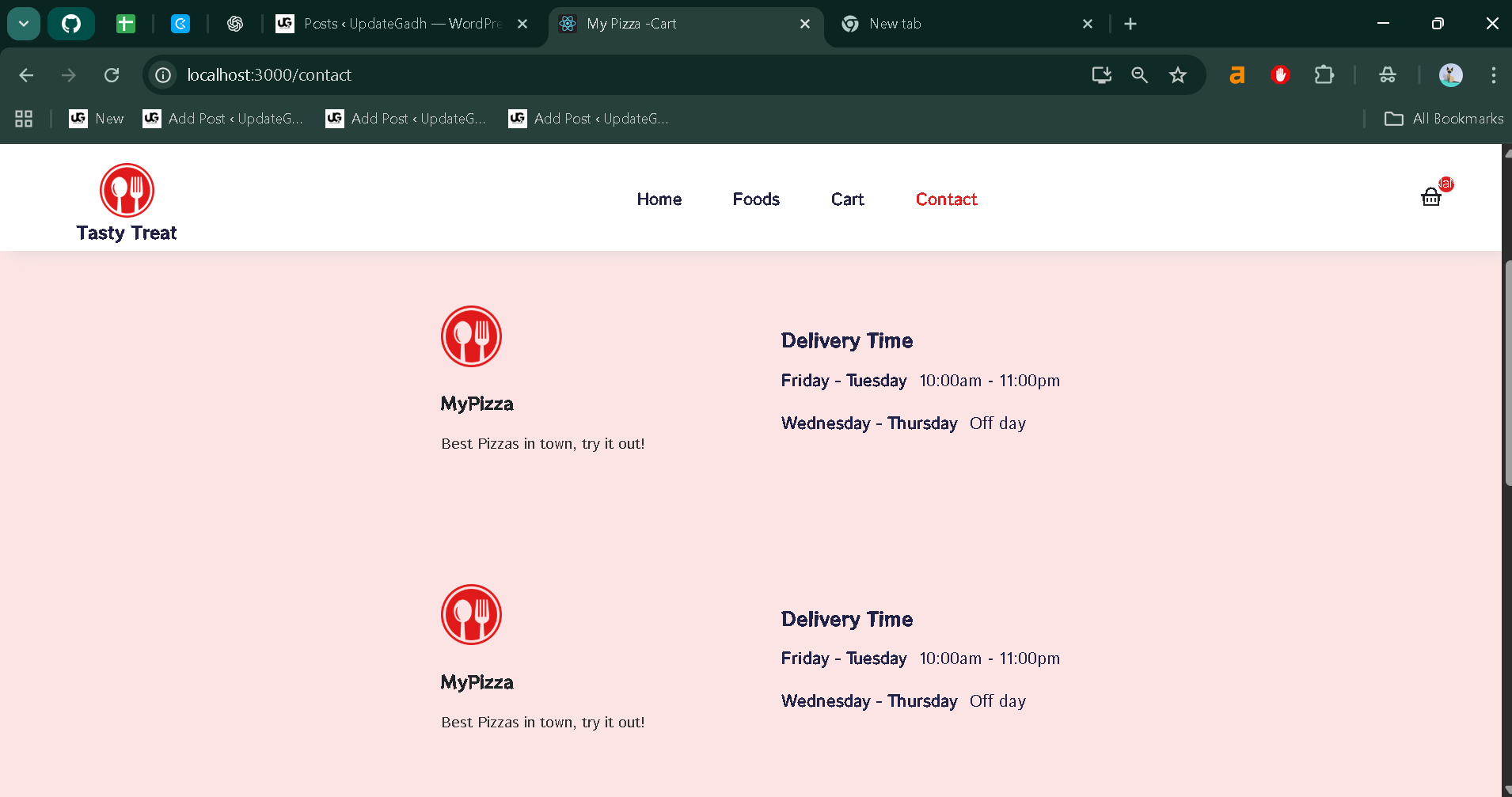 Although this project does not include backend or database connectivity, it provides a strong foundation for understanding how food delivery web applications are structured. It is an excellent practice project for students who want to gain hands-on experience with React components, props, hooks, and routing.