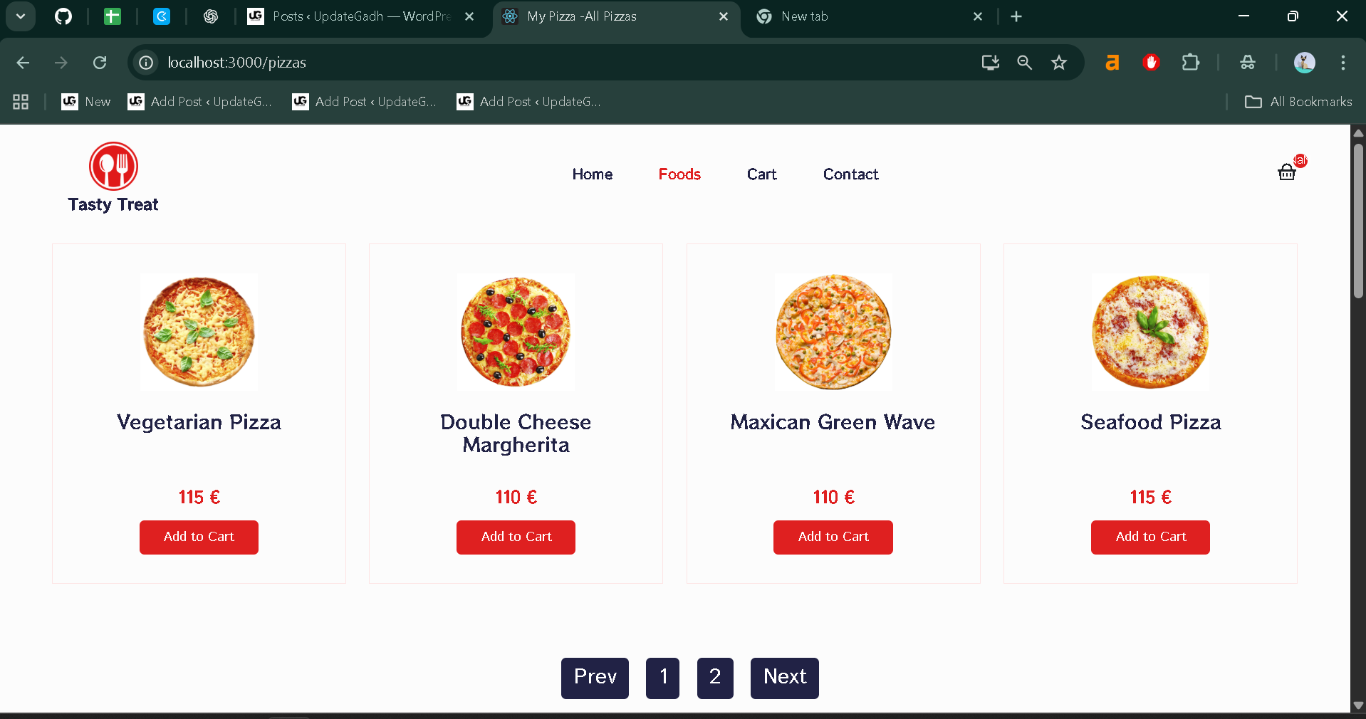 Food products are dynamically loaded from the fake-data/products.js